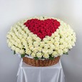 Красно-белое сердце из 151 розы