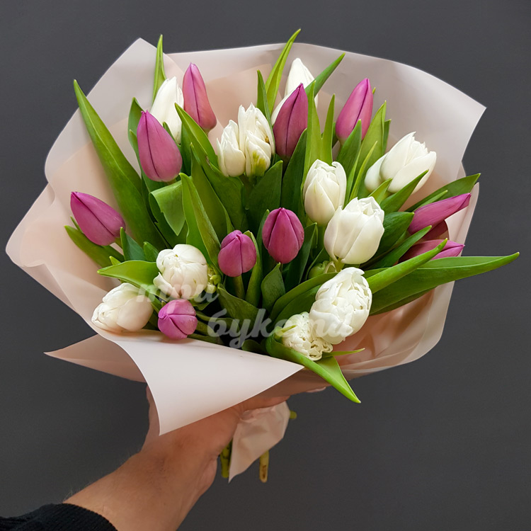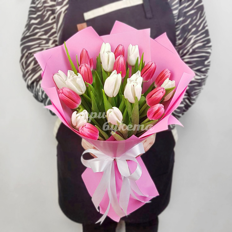 21 белый и розовый тюльпан