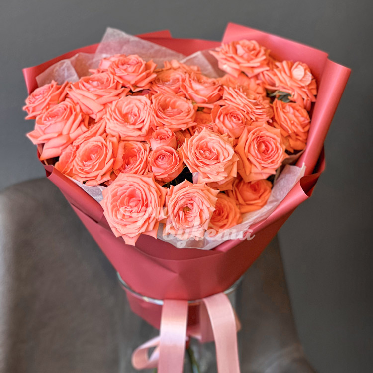 - Кустовые пионовидные розы (розовые), 9 шт.
