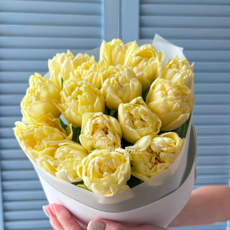 Букет 15 пионовидных желтых тюльпанов