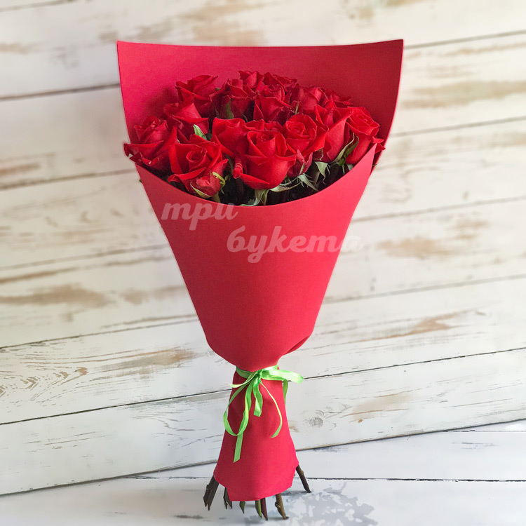 • Красные розы, 15 шт.