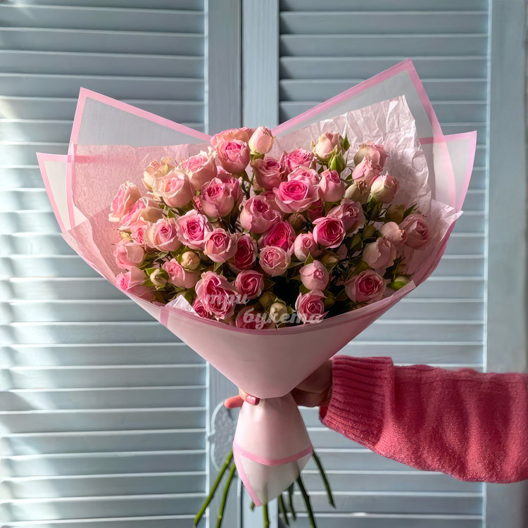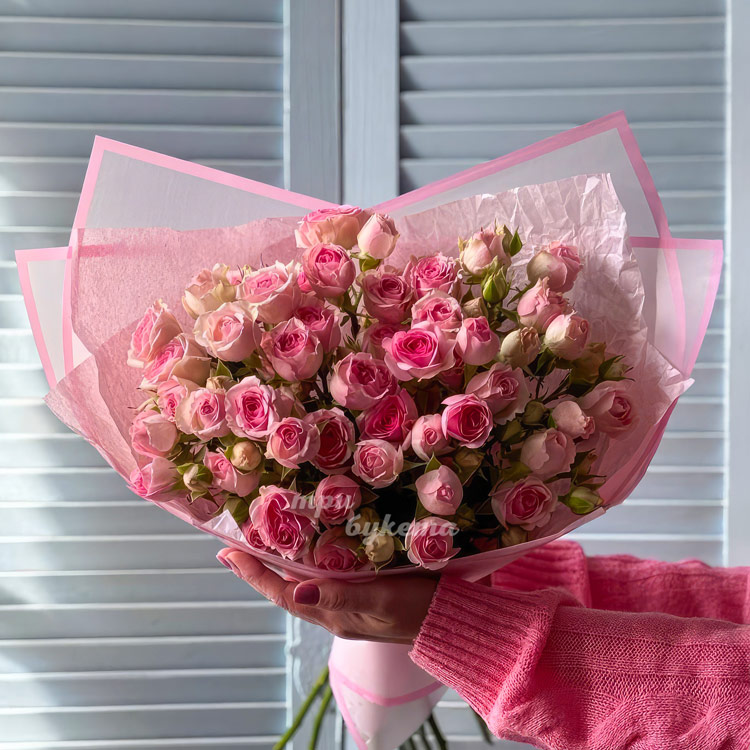 Букет из 9 нежно-розовых кустовых роз