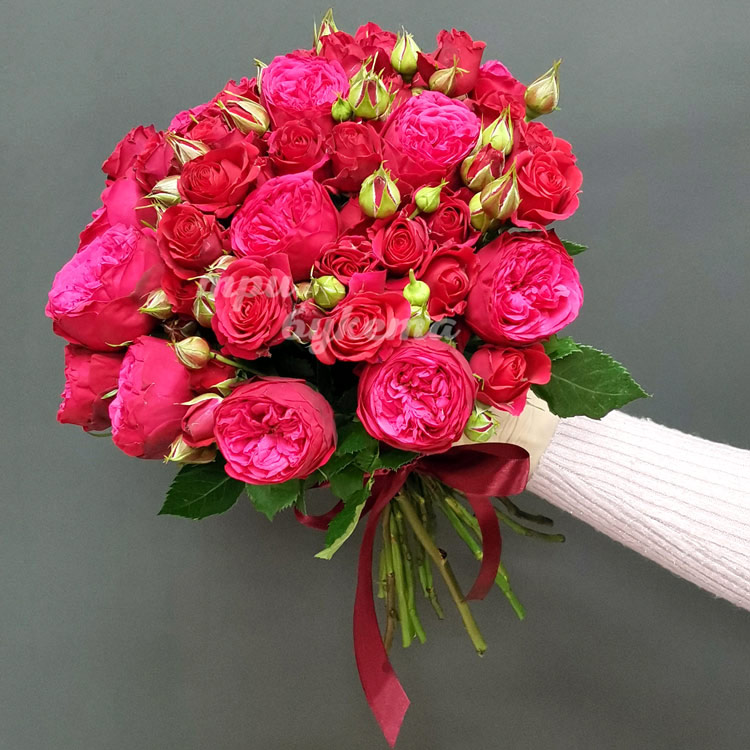 - Кустовые пионовидные розы Ред Пиано, 15 шт.