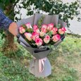 Букет из розовых роз и диантусов
