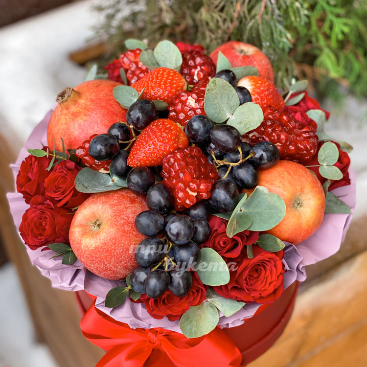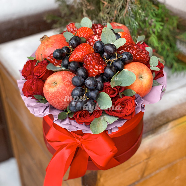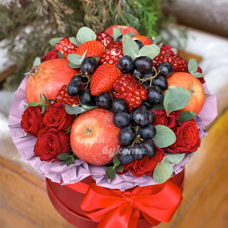 Фрукты и цветы в новогодней коробке