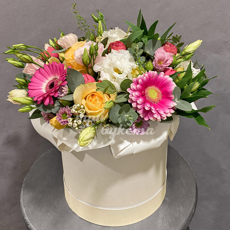 Герберы и розы в коробке