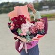 Хвойная композиция с бордовыми игрушками