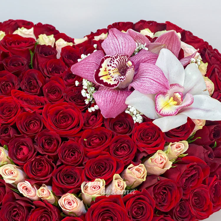 Композиция сердце из роз и орхидей