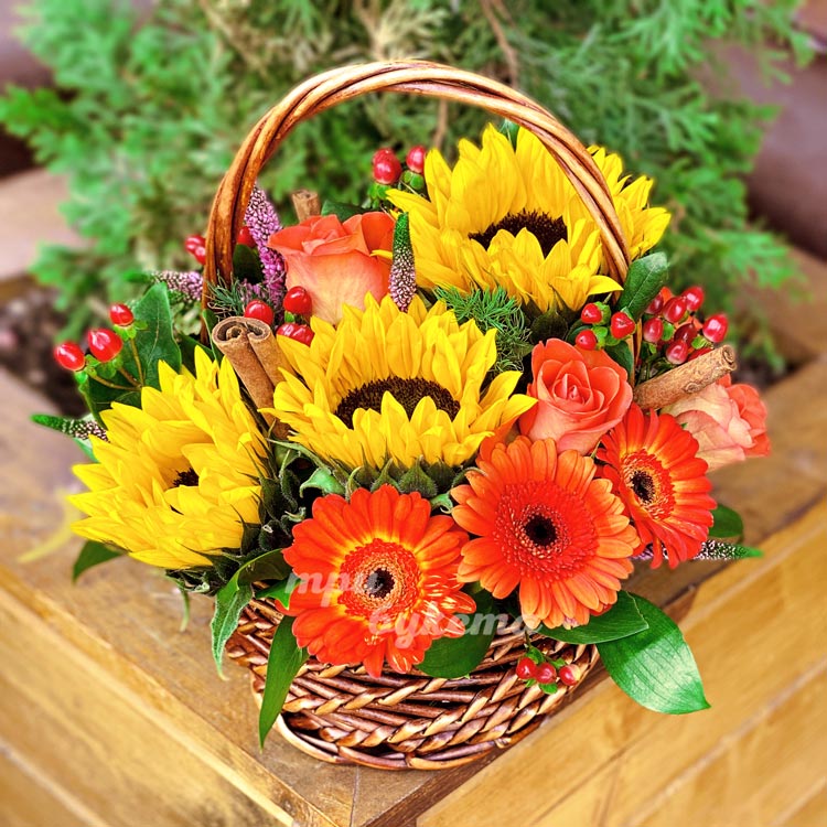 Корзина с большими подсолнухами