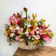 Корзина с разноцветными тюльпанами