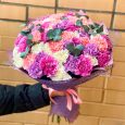 Корзина тюльпанов и гортензий