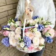 Корзина ярких роз и белых гвоздик