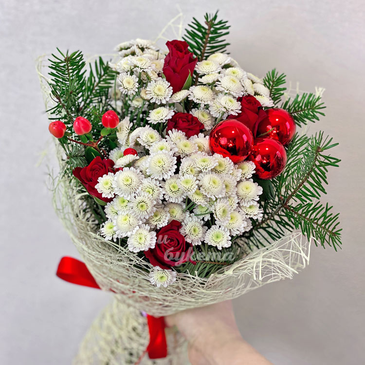 Красно-белый новогодний букет
