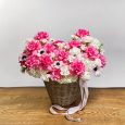 Пышный букет из роз, гвоздик и зелени
