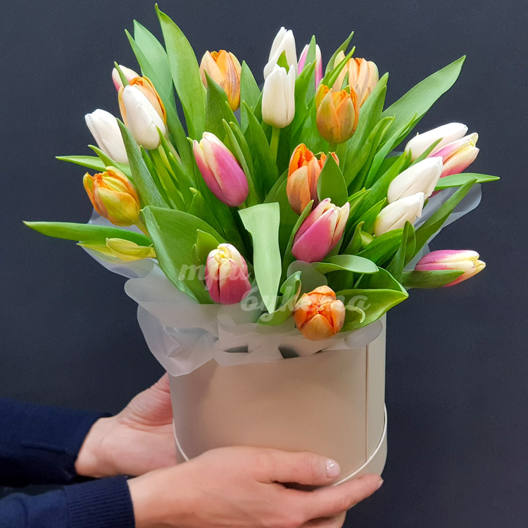Разноцветные тюльпаны в коробке