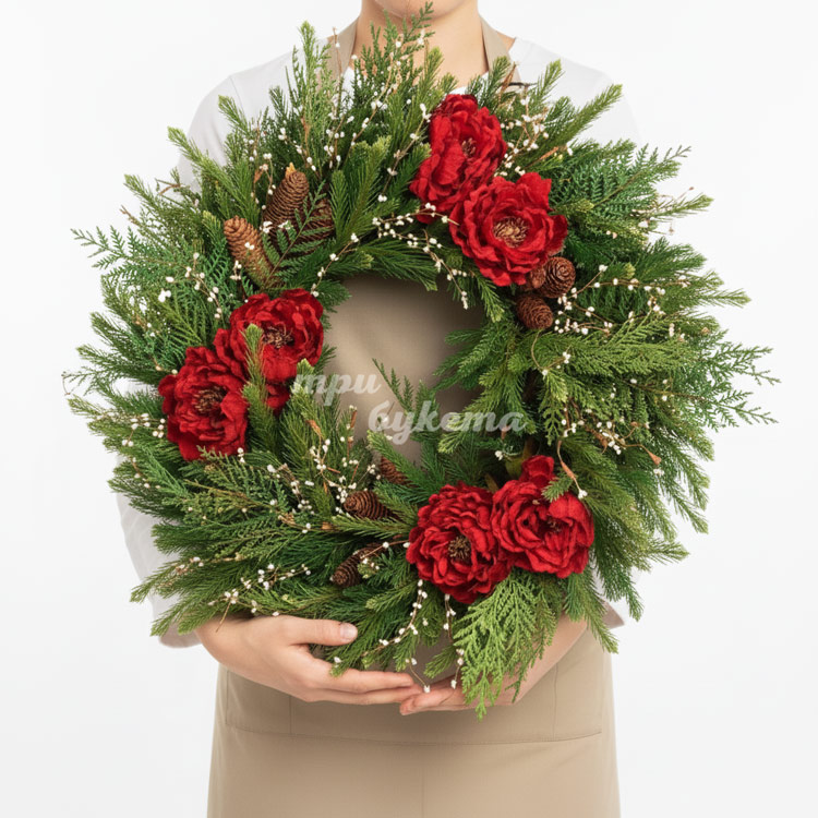 Рождественский венок с цветами