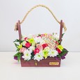 Розовые розы с белыми анемонами в корзине