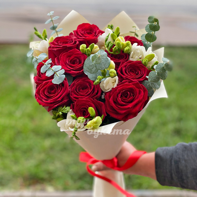 Розы и фрезии на день влюбленных