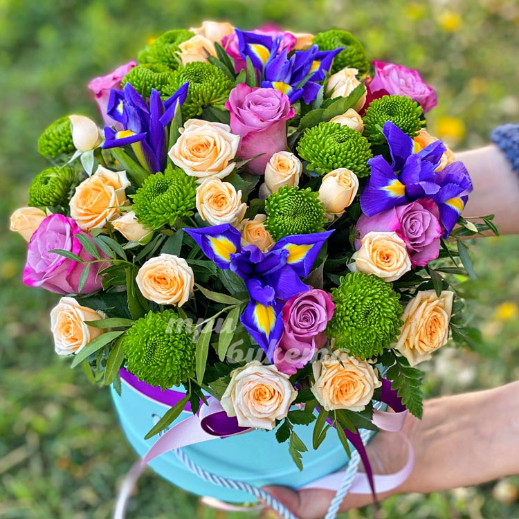 Розы и хризантемы в коробке
