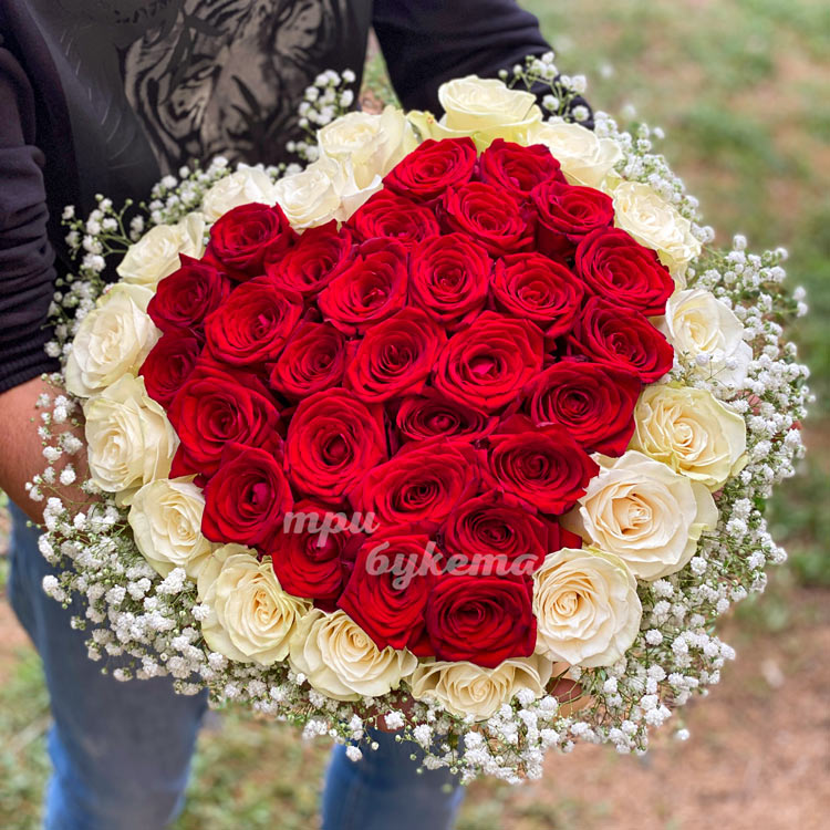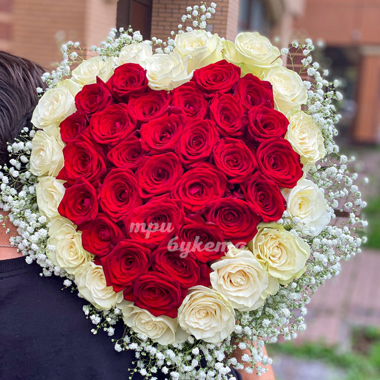 Сердце из белой и красной розы