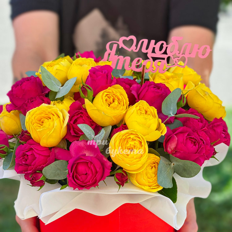 Шляпная коробка пионовидных роз на 8 марта
