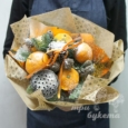 Яркая корзина хризантем, ранункулюсов и роз